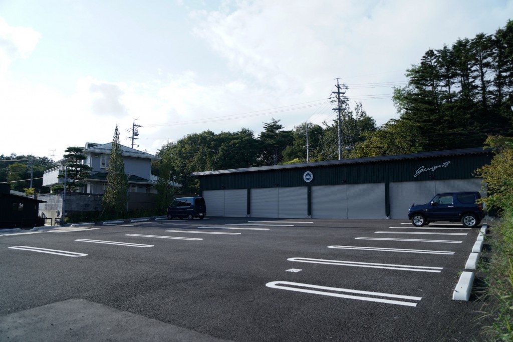 広い駐車場を使ってマーケットやマルシェ。アウトドア家具や大型の展示など。