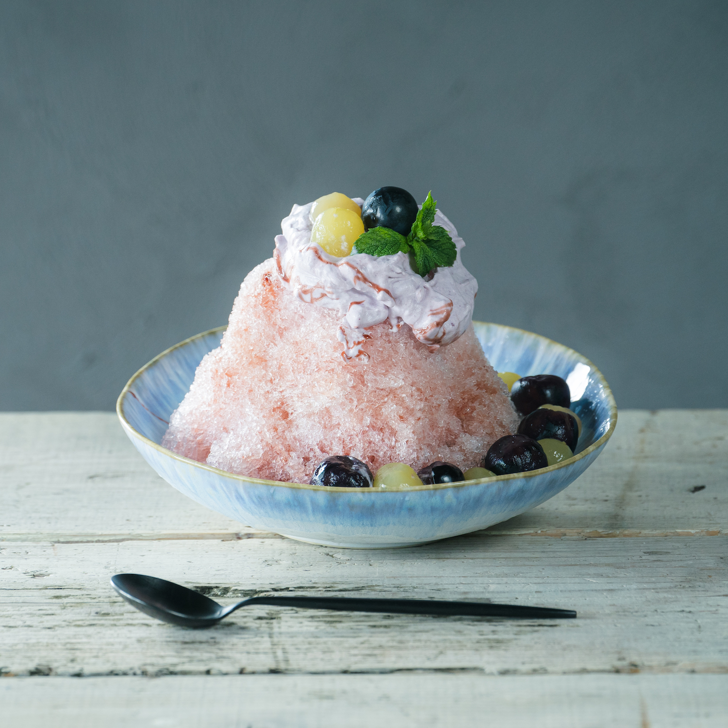 信州 上高地の名水の氷と、シャインマスカットやナガノパープル、とうもろこしなど旬の食材を組み合わせた最涼なひと時をお楽しみください。