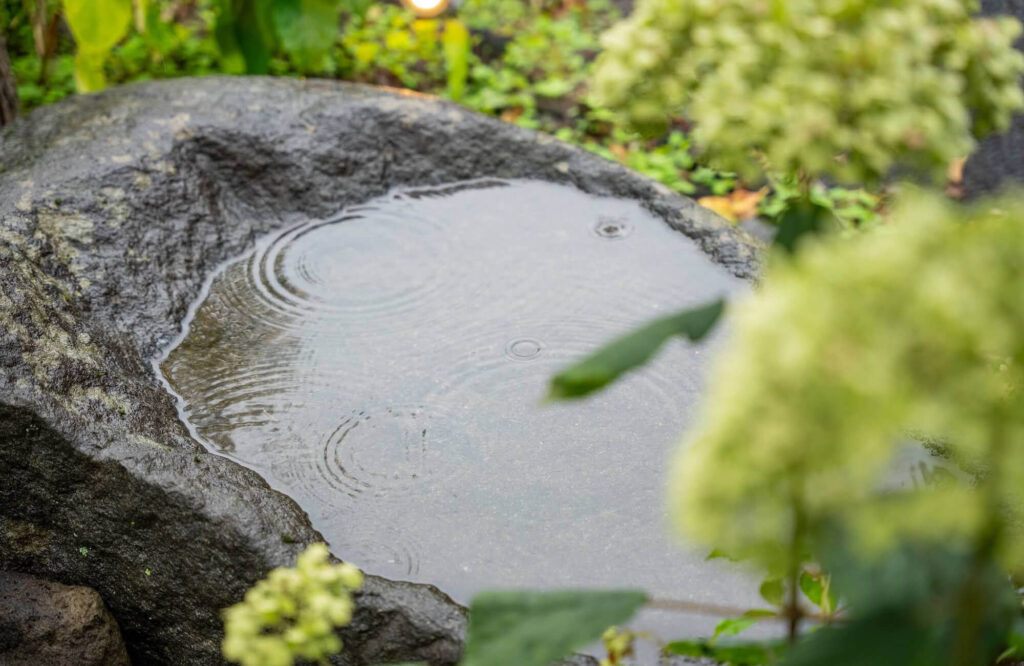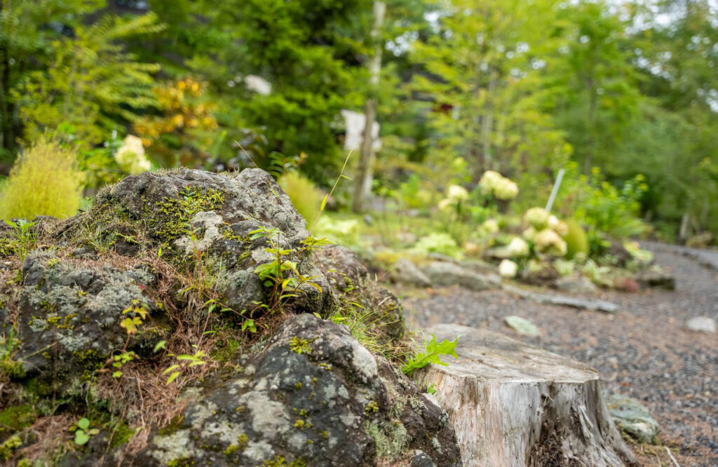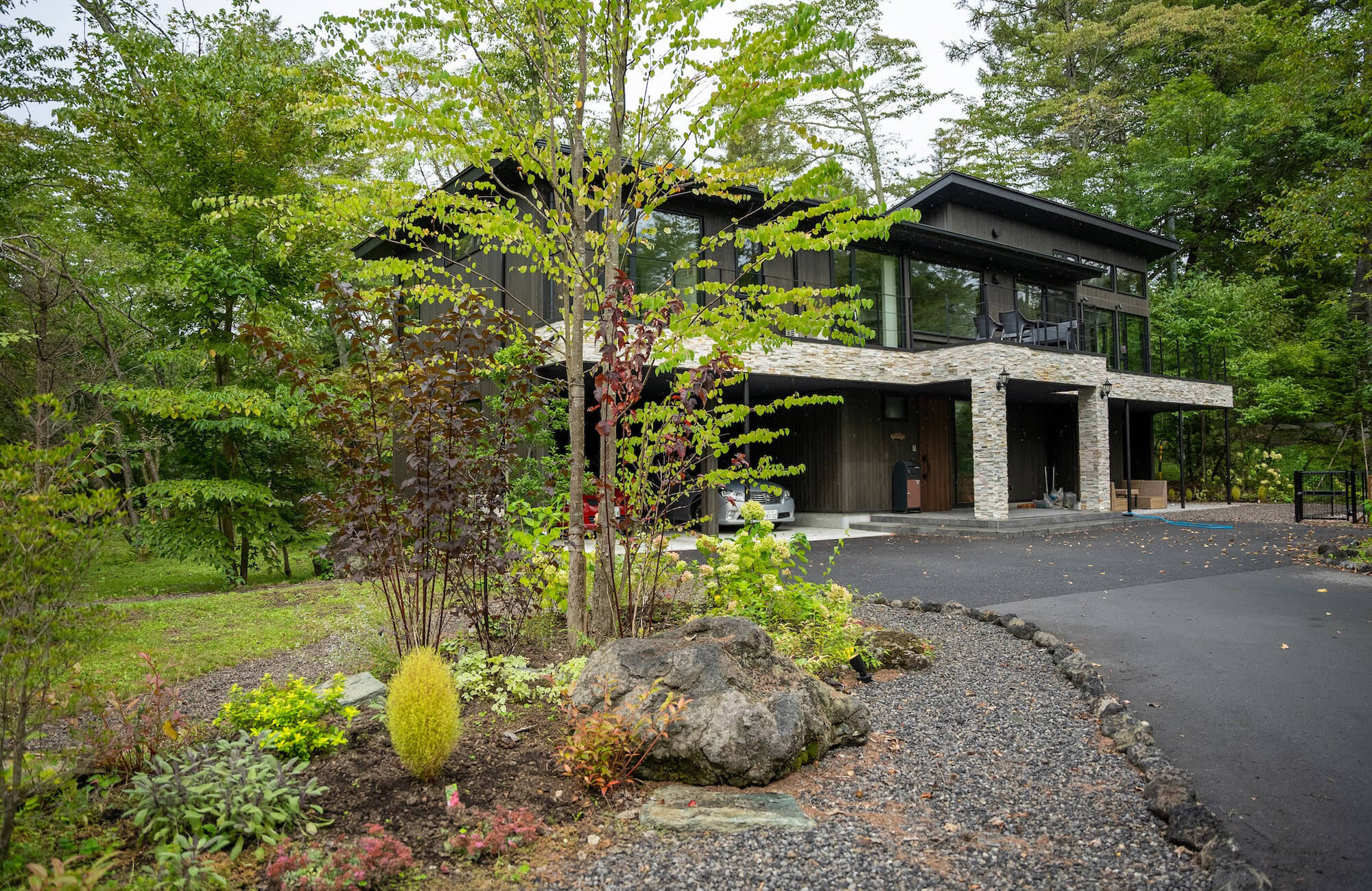 周囲の自然と馴染むよう仕上げたナチュラルなガーデンが今ではご夫妻の日常の一部に、また夜にはガーデンを照らすライトアップがより一層美しさを演出。