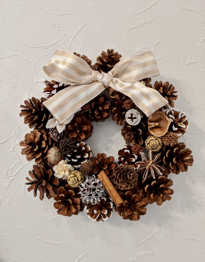 軽井沢の森のような木の実のリース作成の講座です。軽井沢の森でものづくり体験してみませんか?