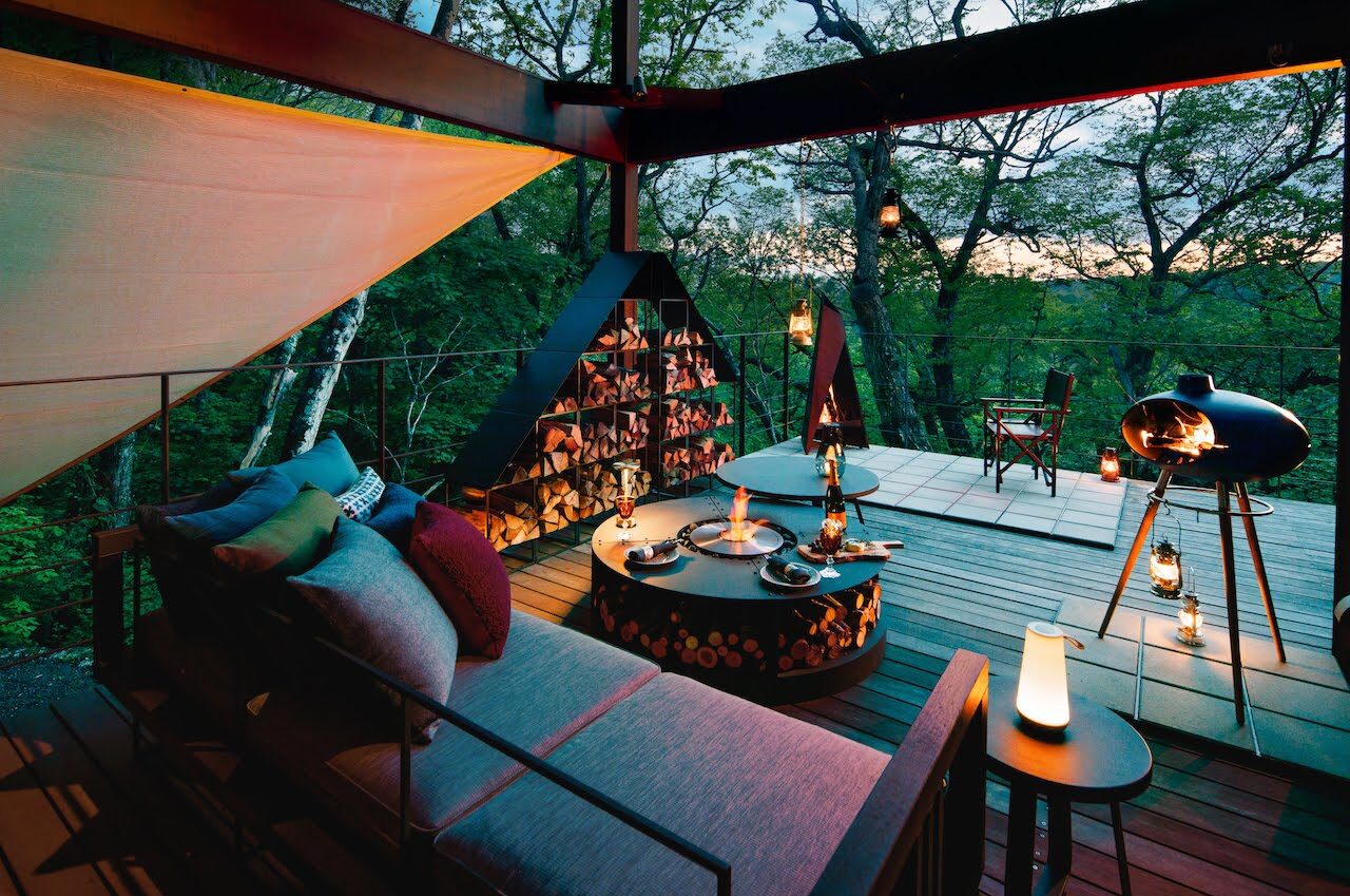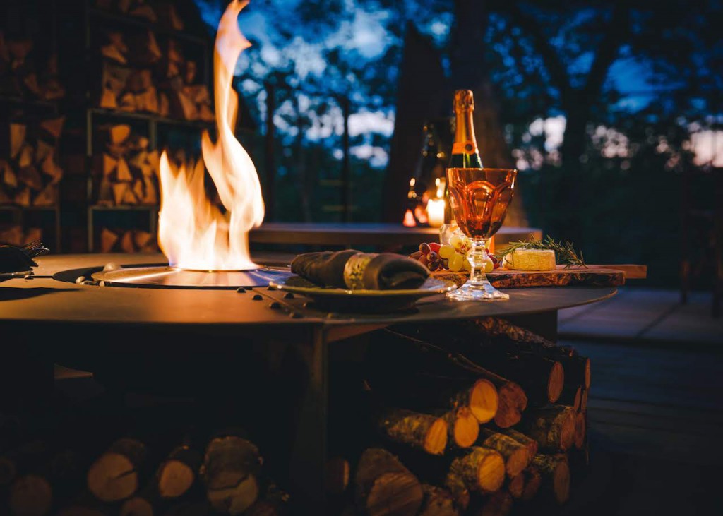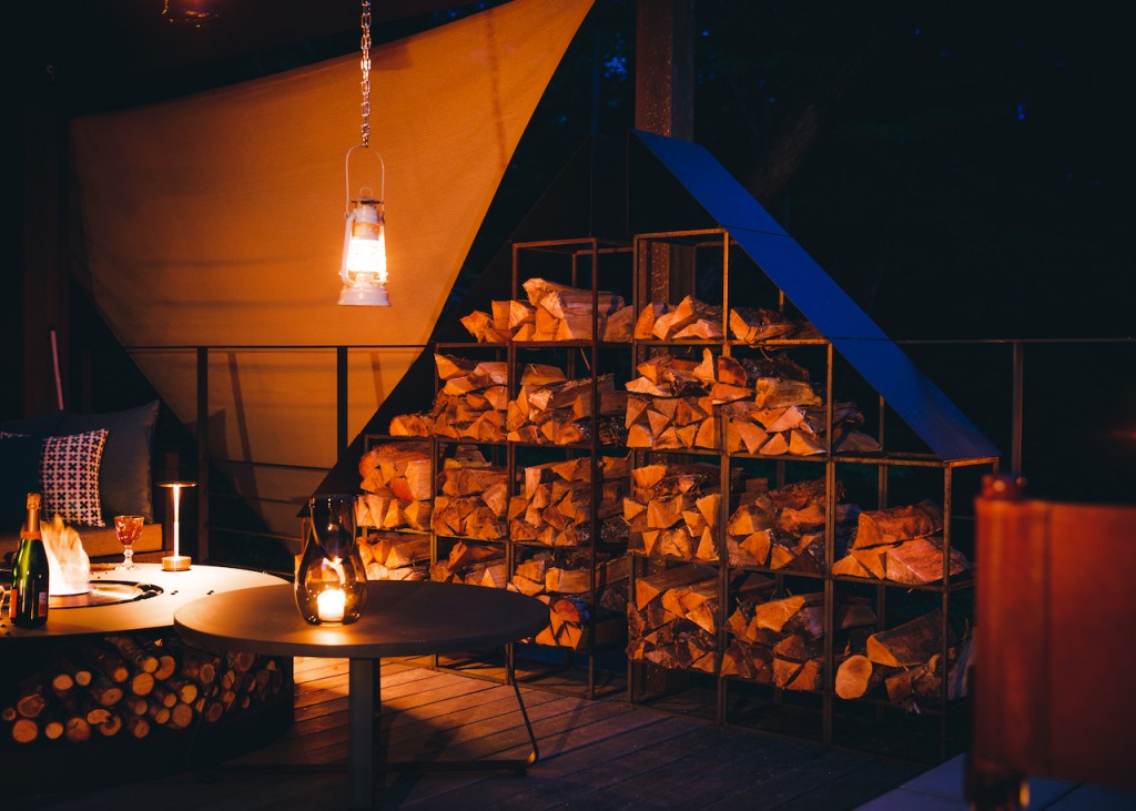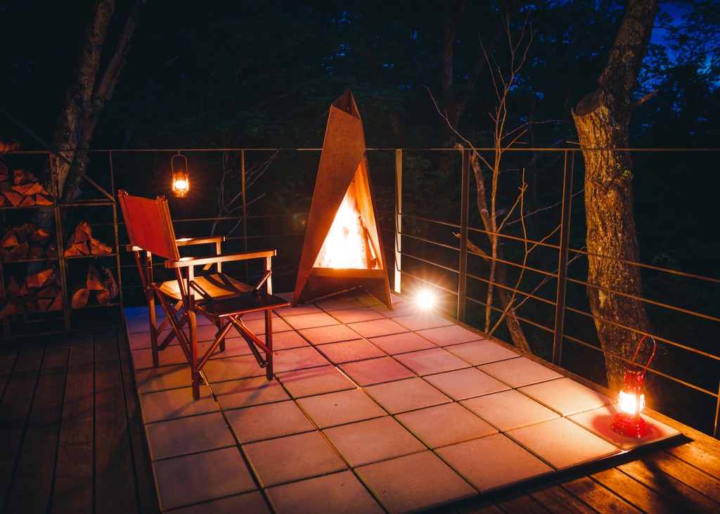バイオエタノール暖炉を仕込んだファイヤーピット、アウトドアオーブン、焚火台。炎を愉しむ仕掛けを盛り込んだ遊び心一杯のアウトドアリビング。防火対策として、コンクリートのデッキステージを設置。ログラックをパーティションとすることで、道路からの視線をさえぎり、プライベート感を高めました。アウトドアでありながら、ゆっくりと落ち着ける大人の隠れ家のような空間となりました。