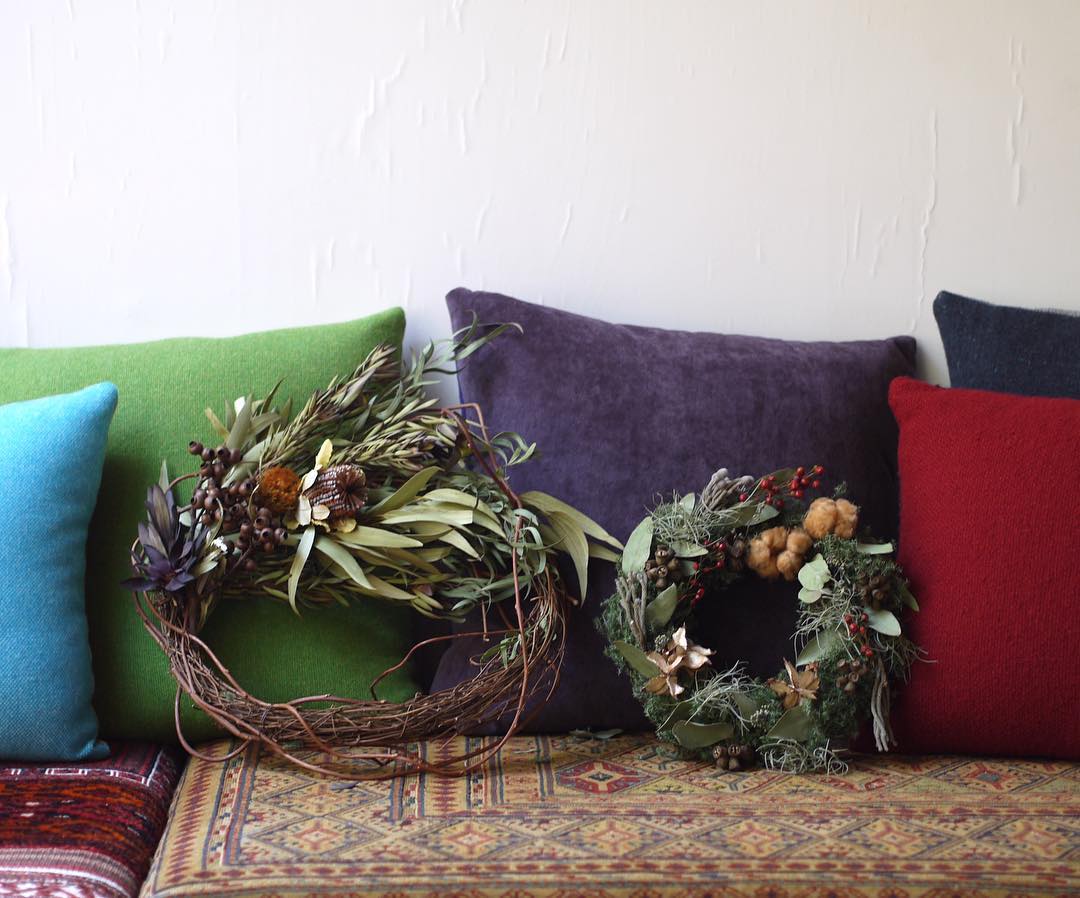 11月から12月にかけてはクリスマスリース作りのワークショップを6回にわたり開催予定です。写真のリース(いずれかのタイプ)を作成します。