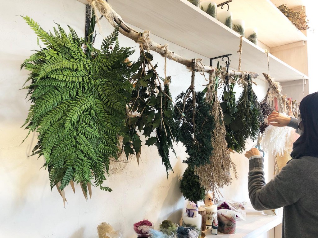 たくさんご用意している中からお好きなリーフや木の実を選んで、