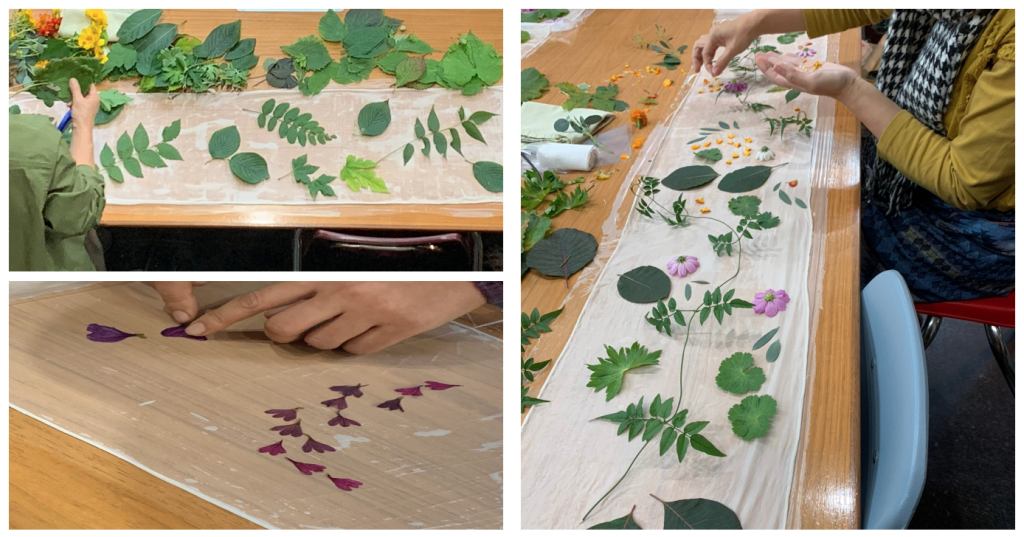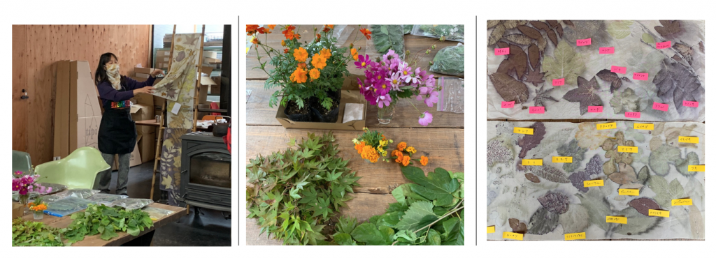 今年は軽井沢の紅葉も少し遅いため、紅葉前の植物を軽井沢で採取してくださり、ワークショップ前にプリントのお試しもしてくださいました。