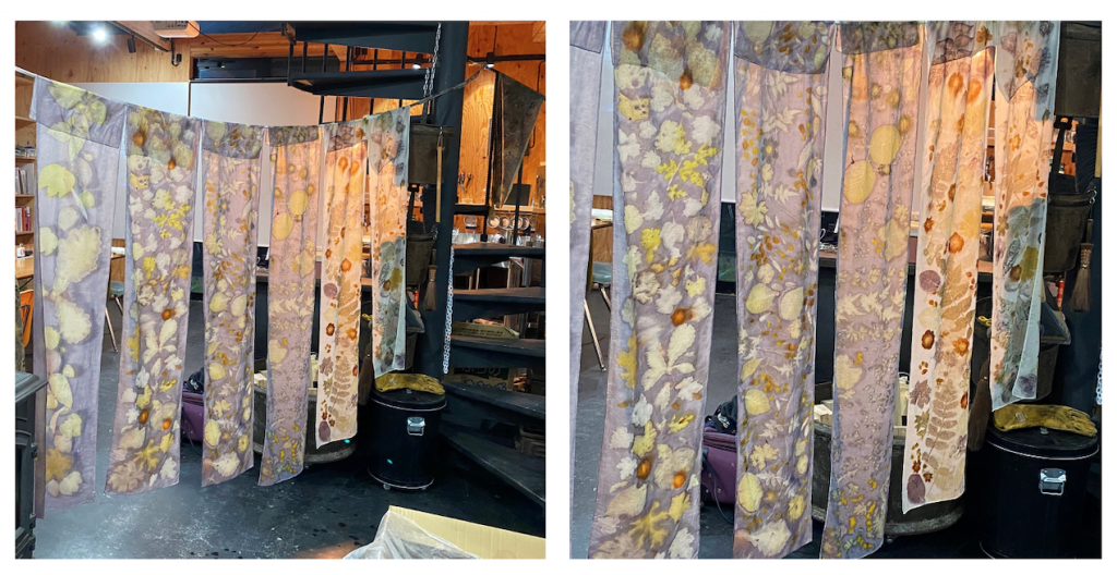 細かな葉脈が綺麗に映し出されていたり、葉っぱのシルエットが抜き出されていたり。とてもとても素敵なスカーフが出来上がりました。