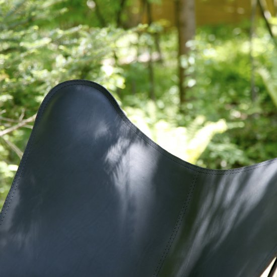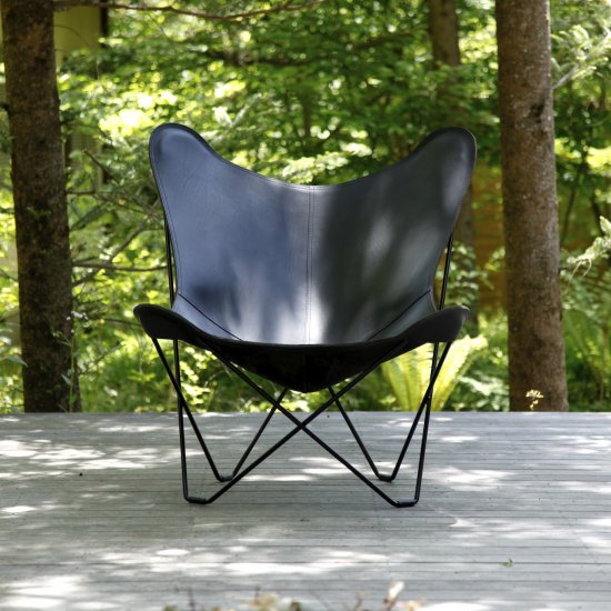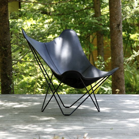 スェーデン『CUERO社』のBKFチェアは3人のアルゼンチンのデザイナーによって作られ、デザイナーそれぞれの頭文字をとって名付けられました。蝶が羽を広げた形に似ていることから、“バタフライチェア”という愛称があり、その名のように1脚で圧倒的な存在感を放ちます。