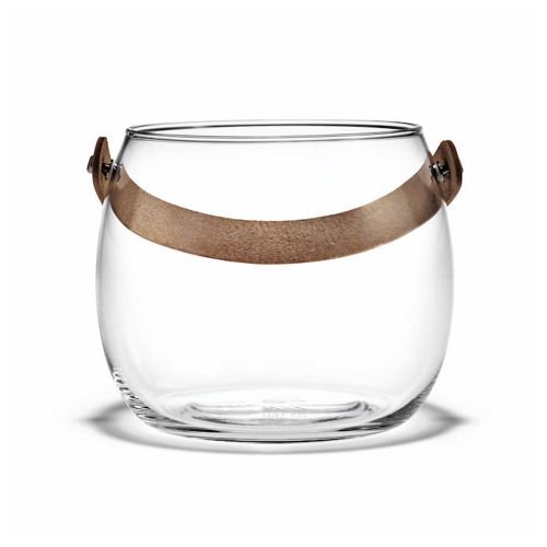 透明感溢れる吹きガラスに本革のストラップの組み合わせが印象的。