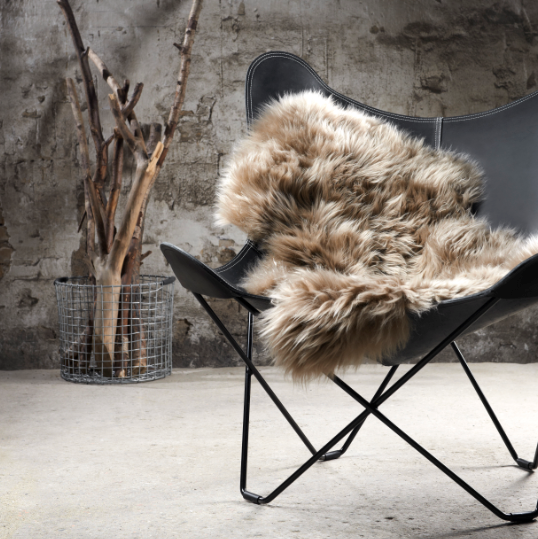北欧の人々の暮らしでは、シープスキン(羊の毛皮)はとても身近なもので必需品ともいえるほどです。寒い冬が長く、太陽の光や暖かさに限りのある北欧では、椅子やソファにシープスキンを着せかけるのが一般的な風習です。座り心地を良くするためだけでなく、触れば心地よい柔らかさ、そして見た目でもインテリアの暖かさを演出。
