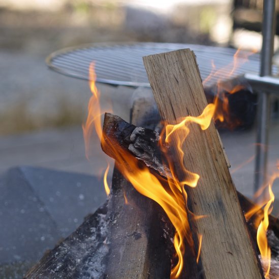 40cmのポールとのセットになっていて、焚火台本体のホールにポールを差し込んで設置すると、360度回転、高さの調節も可能で薪の火加減を調節できます。