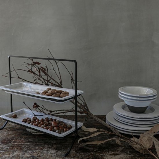 ティータイムシーンやパーティーのオードブルを乗せるのにぴったりの2段セット。