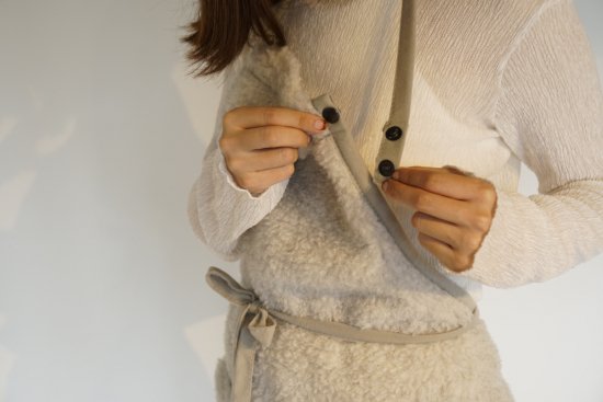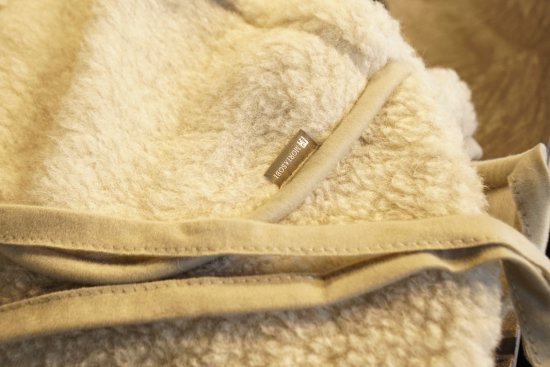 特殊な方法により、ウール独特のチクチクとした肌触りを最小限に抑えるようカットしているので、肌あたりがふんわりと優しいのが特徴です。