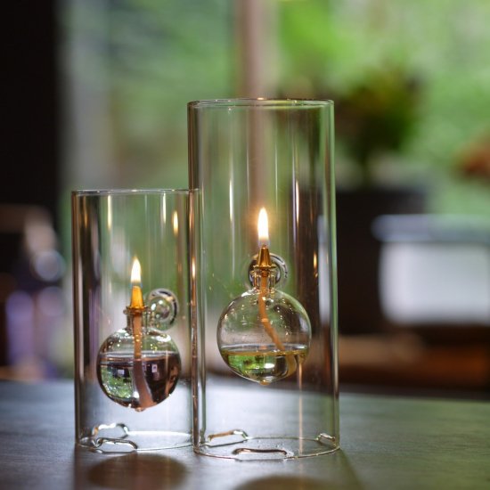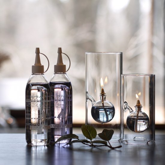 円柱形のガラスで安定性があり、かつ美しさが際立つデザインは、和洋問わず、また業務用でも、ご家庭の室内やテラスなどアウトドアでも、どのような空間にもとけこみやすいデザイン。ガラスの中に映る優しい炎の揺らぎを飽きることなく眺めてしまいます。癒しのひと時”Hygge“な時間を過ごすのにぴったりなオイルランプです。