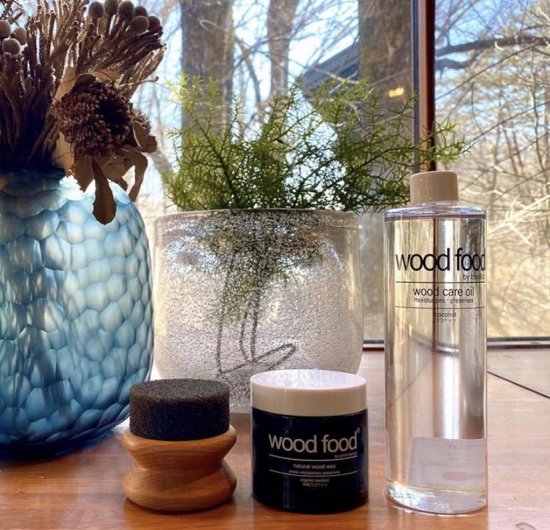 オイルで仕上げた後、wood foodワックスを合わせてご使用いただくと、撥水・抗菌目的も合わせて期待できます。