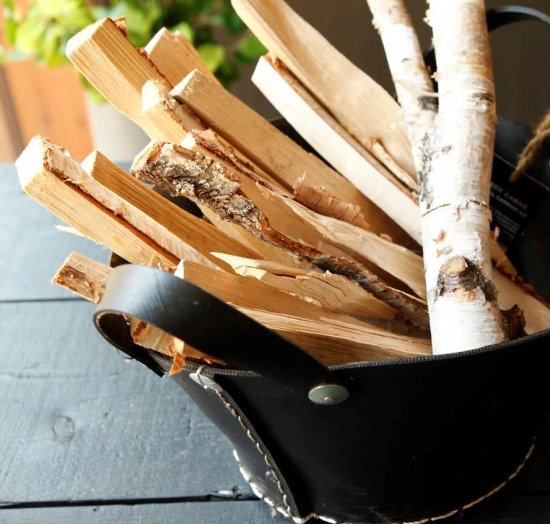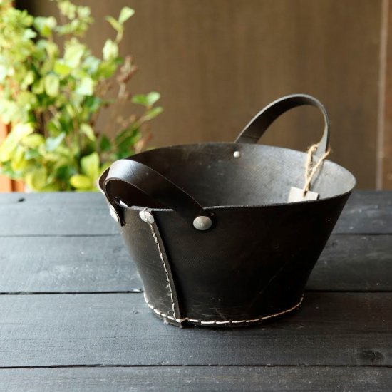 フランス生まれのバスケットは、一見革製にも見える重厚な造りですが、実はタイヤを再利用した環境にやさしいリユース品。薪ストーブの近くにおいても馴染むデザインでSとLの2サイズ展開です。